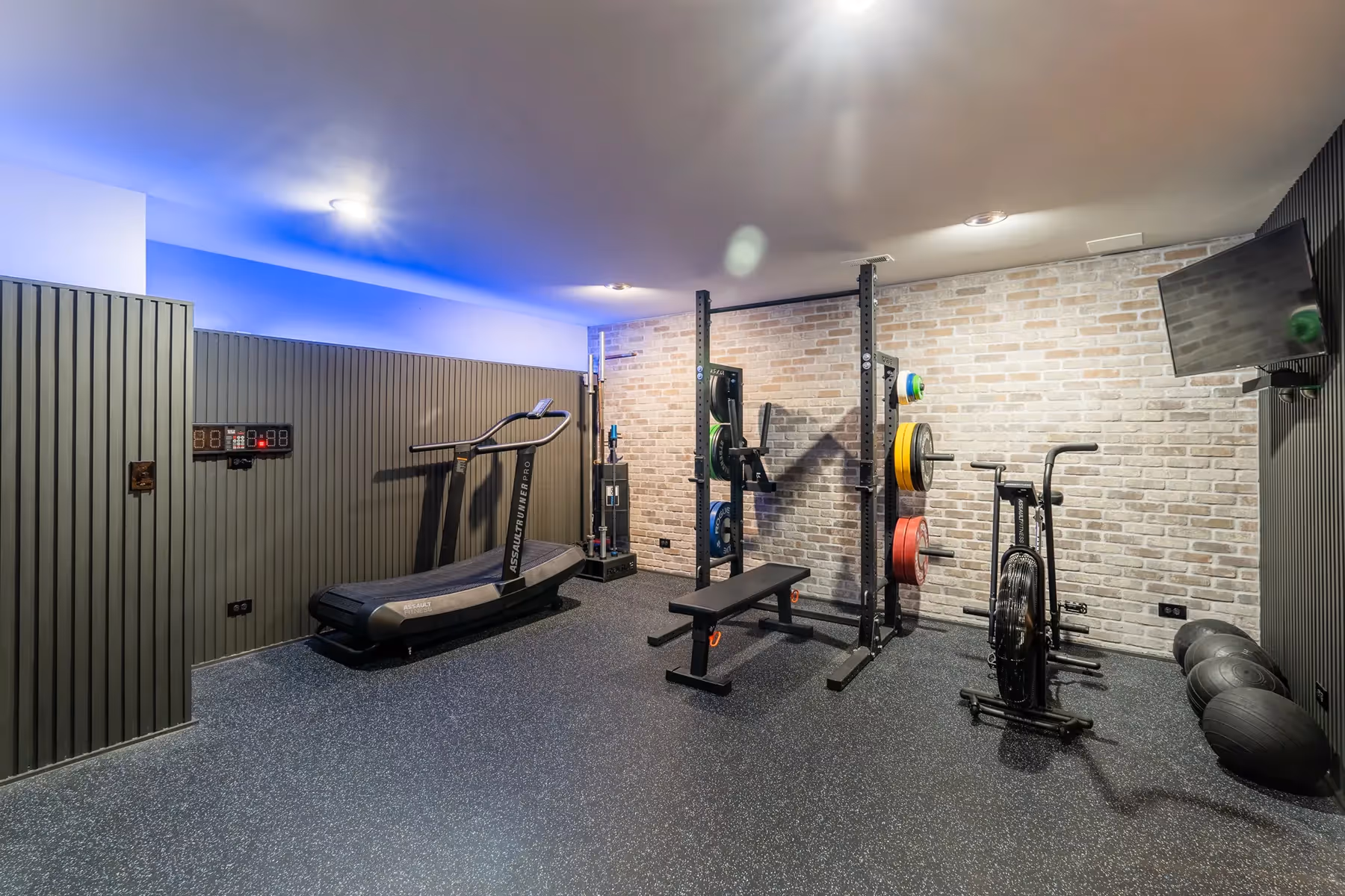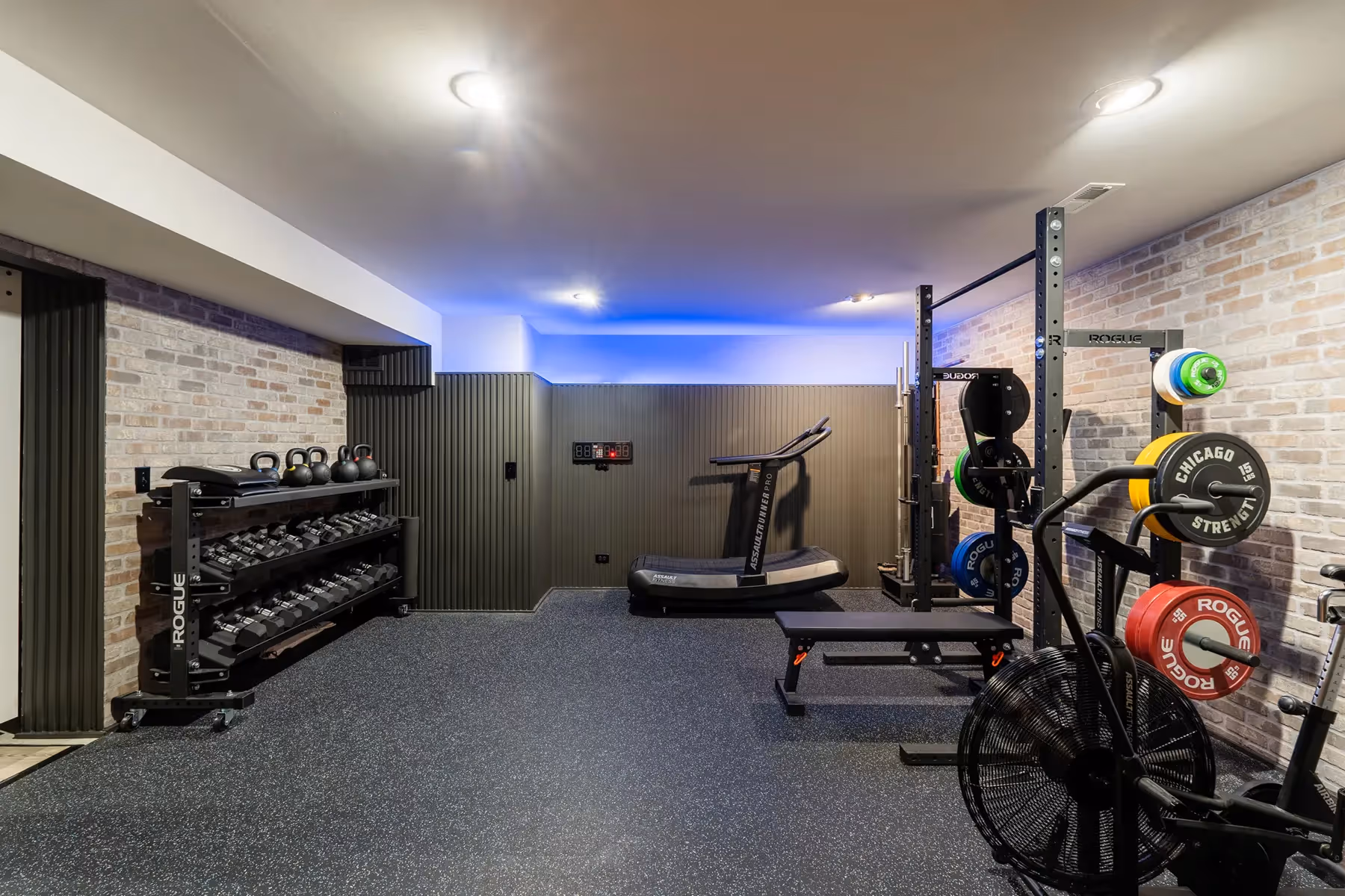 Tailored to the client’s weightlifting and agility goals, it balances function and sophistication, making it the ultimate strength and conditioning hub.
